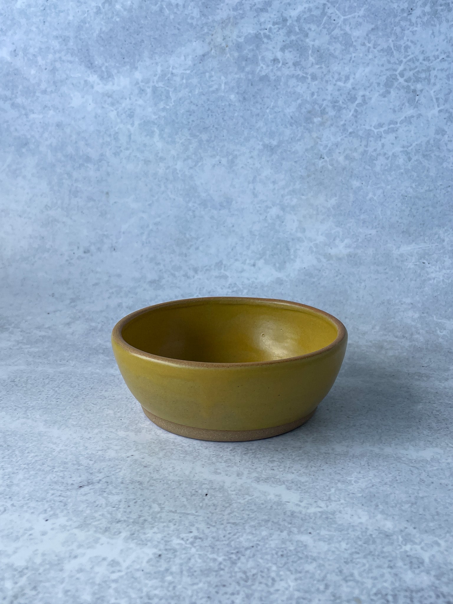 This handmade snack bowl is the right size for nuts, olives, dips or a small treat. It has a smooth, clean shape that sits nicely on the table.